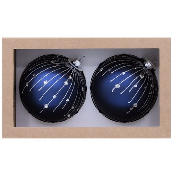 Vitbis Bombka szklana dekorowana gładka niebieska i srebrna 100mm 6szt. mix