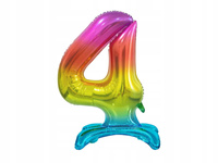 Balon foliowy B&C Cyfra stojąca 4, tęczowa, 74 cm