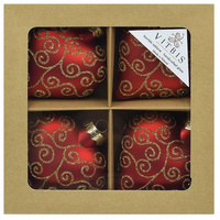 Vitbis Bombka szklana gładkie czerwony złoty zielony 80mm 9szt.