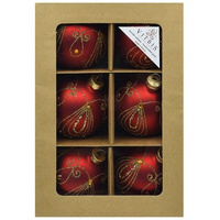 Vitbis Bombka szklana czerwona w złote pętelki 80mm 6szt.