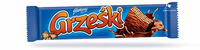 Grześki W mlecznej czekoladzie Wafel przekładany kremem kakaowym w czekoladzie mlecznej 36 g